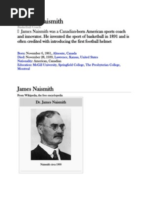 James Naismith Football Helmet : The Invention Of Basketball By Perry Kaplan Growing Up James Naismith Was Born In 1861 In Ramsay Township Ontario Canada When He Was Barely 9 Years Ppt Download