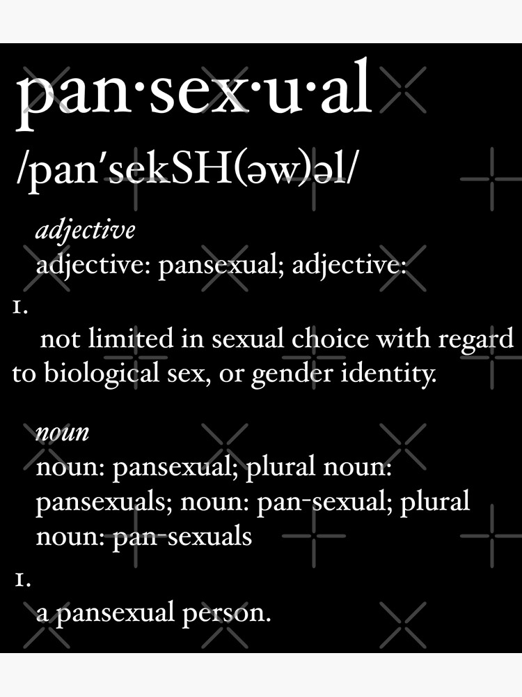 A rare and magical species who's sexual orientation consists of attraction to just about any particular shade of queer. No, pansexual and bisexual are not the same thing. Clear explanations of natural written and spoken english. 'pansexuals feel that bisexual, with its implication of men and women only, excludes see definitions & examples. Pansexual (often shortened to pan ) is the attraction to people regardless of gender. Although pansexual people have definitely been around longer than that, the general public is just starting to acknowledge the term and learn what that sexual identity means. Information and translations of pansexual in the most comprehensive dictionary definitions resource on the web.